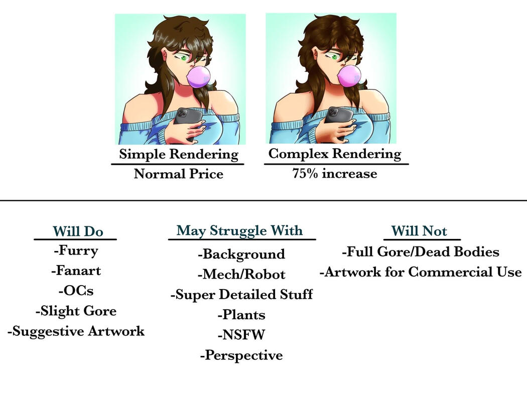 Notes: I struggle with motivation and I am still a student, so some artworks may or may not be a bit late. I also only take PayPal and pay only at the beginning!
